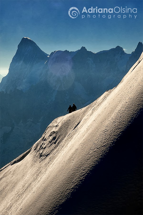 La fotografia mostra a 2 alpinistes descendent des de l'Aiguille du Midi per una cresta de neu per a realitzar alguna travessa prop d'allà. Darrera dels dos protagonistes s'imposa l'Aiguille du Plan (crec que és aquesta...no recordo amb exactitut quina muntanya és, ja que estava completament rodejada i èbria de muntanyes i neu, jaja).